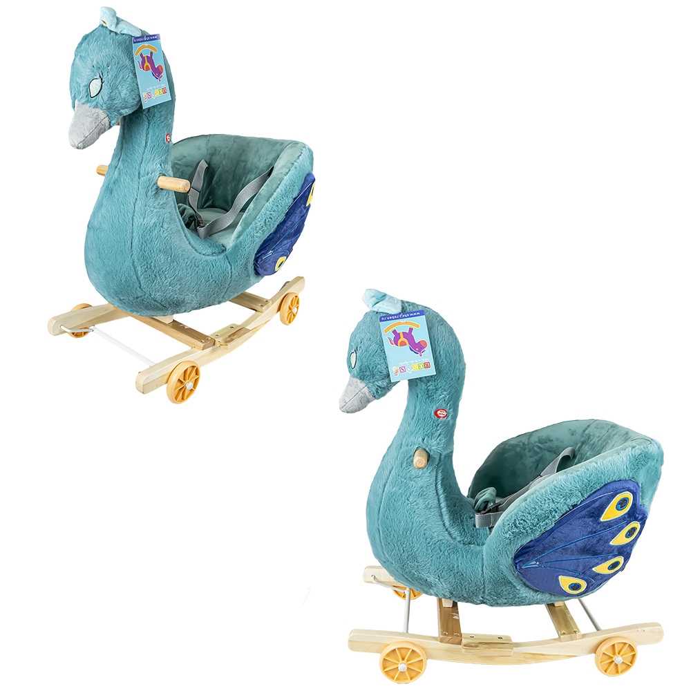 Balansoar pentru bebelusi, Paun, lemn + plus, cu rotile, 66 cm