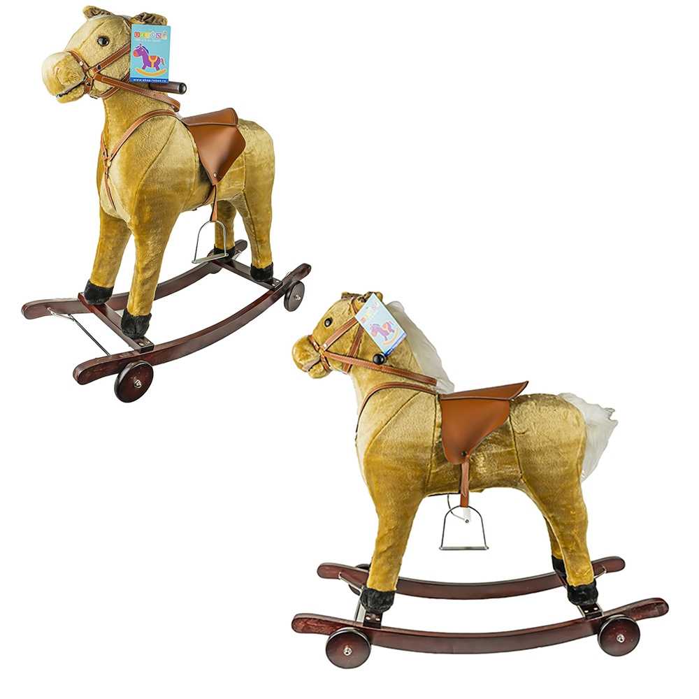 Calut balansoar, lemn + plus, maro, cu rotile, 90x21x78 cm