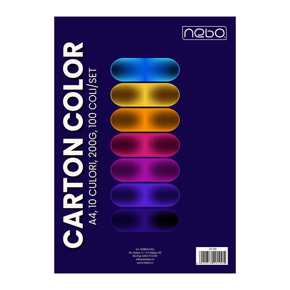 Carton color A4, 200g, 10 culori, 100 coli/set – NEBO