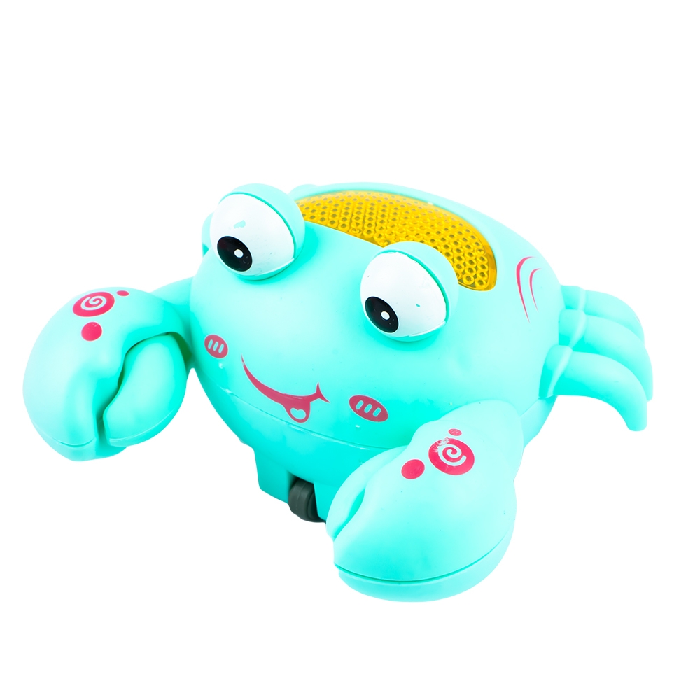 Trageti de maneta din spatele crabului si acesta va porni intr-o cursa distractiva insotita de lumina, atragandu-i pe cei mici in urmarirea lui!