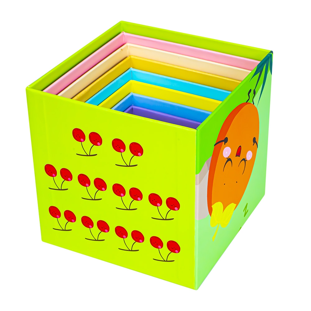 – Setul contine: 10 cuburi din carton de diferite culori pastel si dimensiuni ce le face potrivite pentru suprapunere piramidala.
