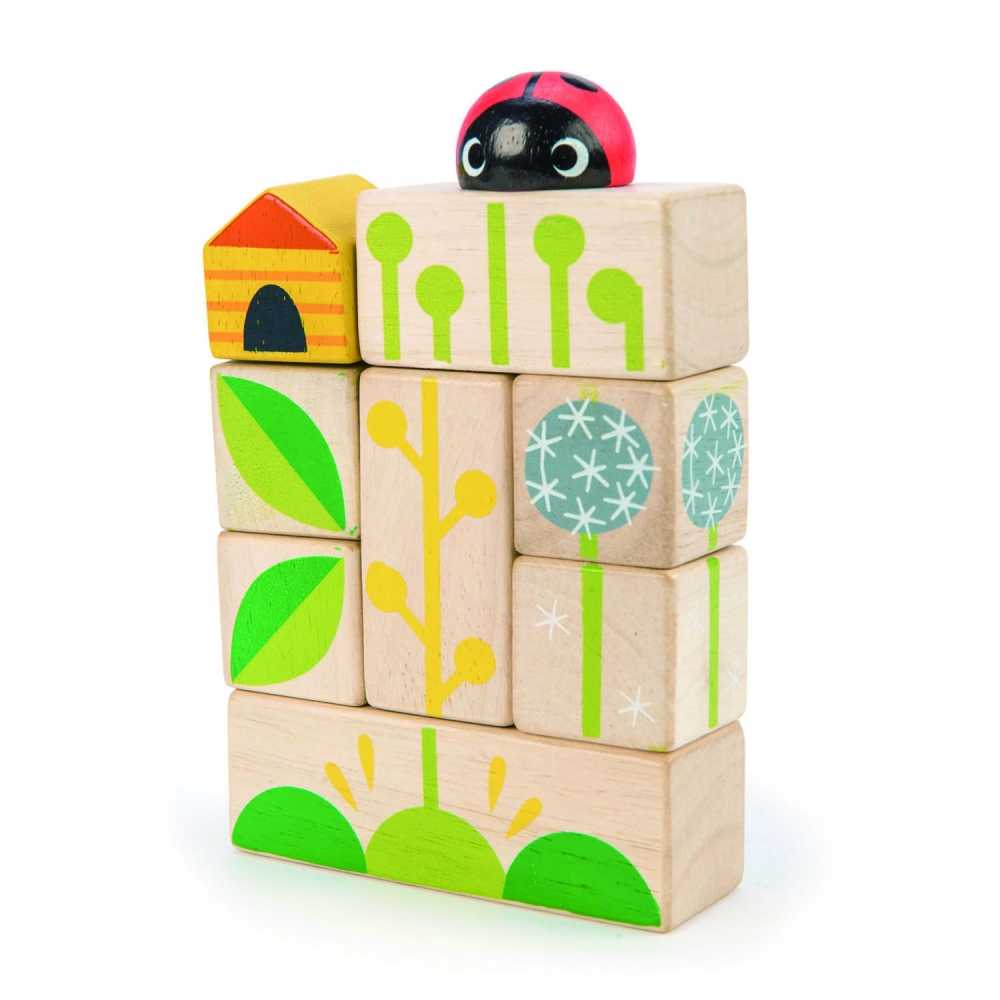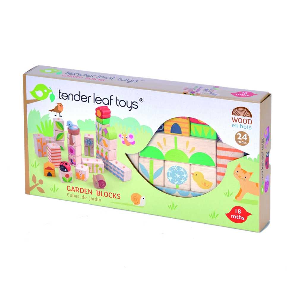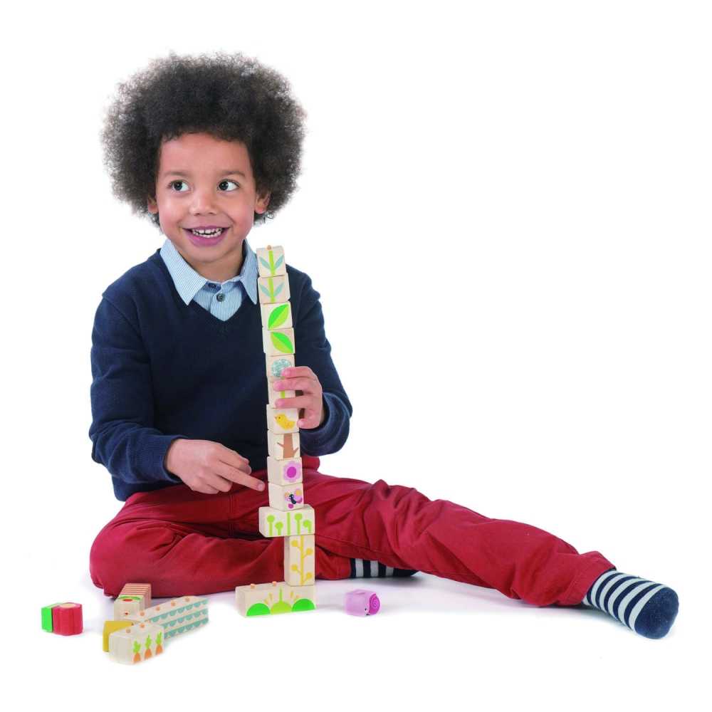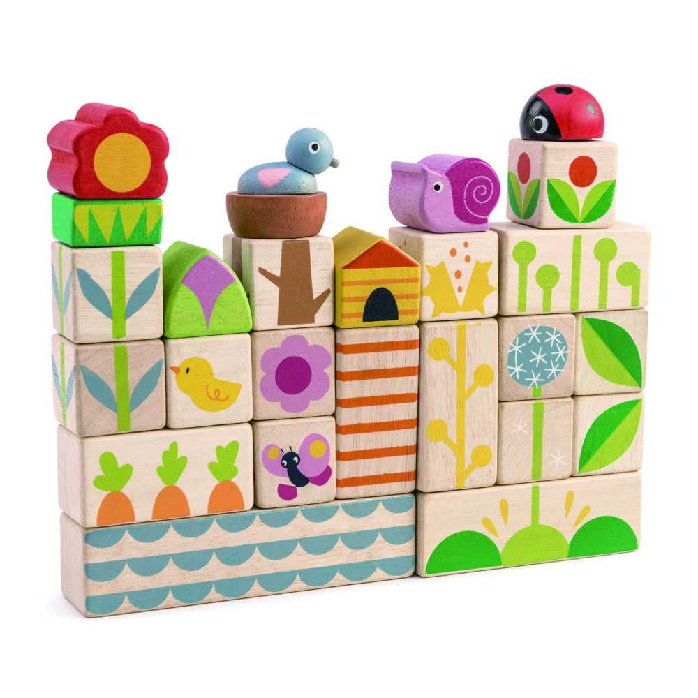 Cuburi stivuibile cu ilustratii din gradina, din lemn, 24 piese