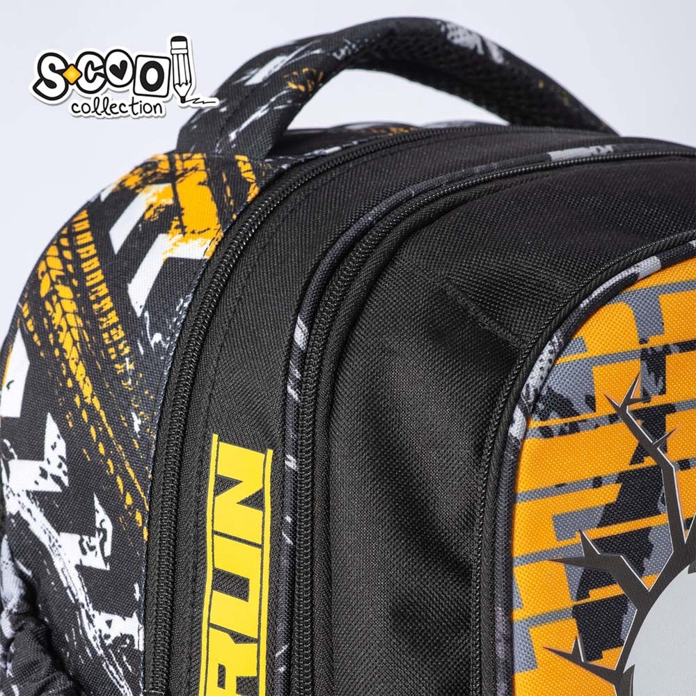 – Ghiozdanul dispune de un compartiment principal spatios ce se inchide cu un fermoar din plastic cu doua cursoare metalice, pentru o manipulare usoara.