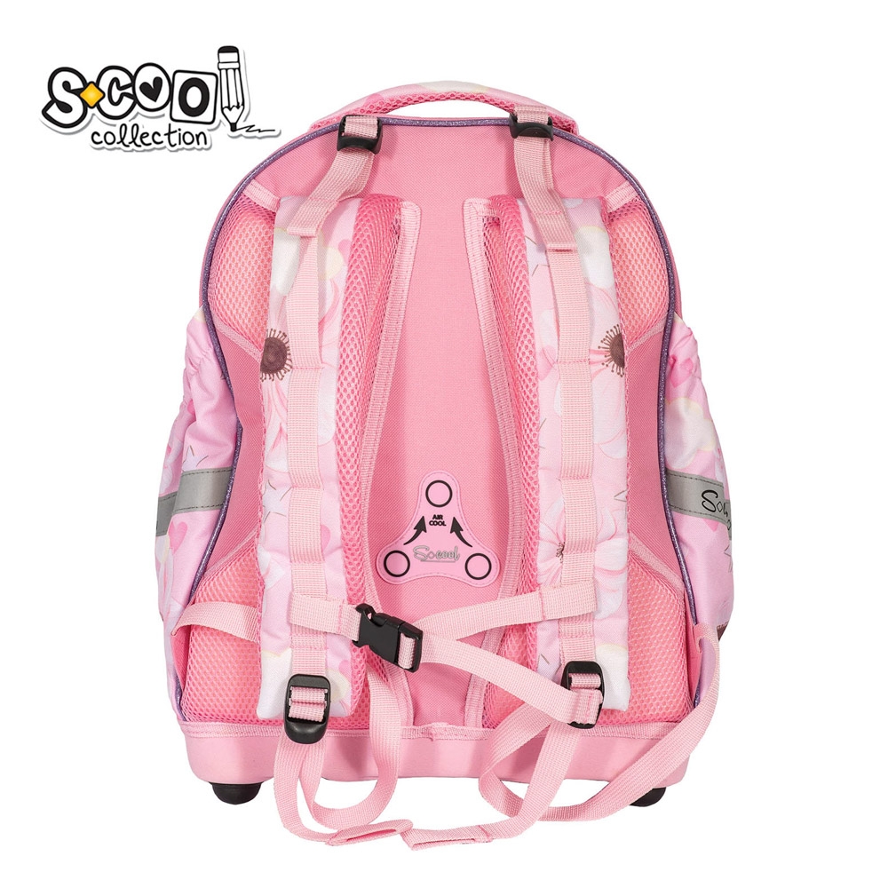 – Baza ghiozdanului solida este realizata din spuma EVA si are 4 picioruse din plastic.