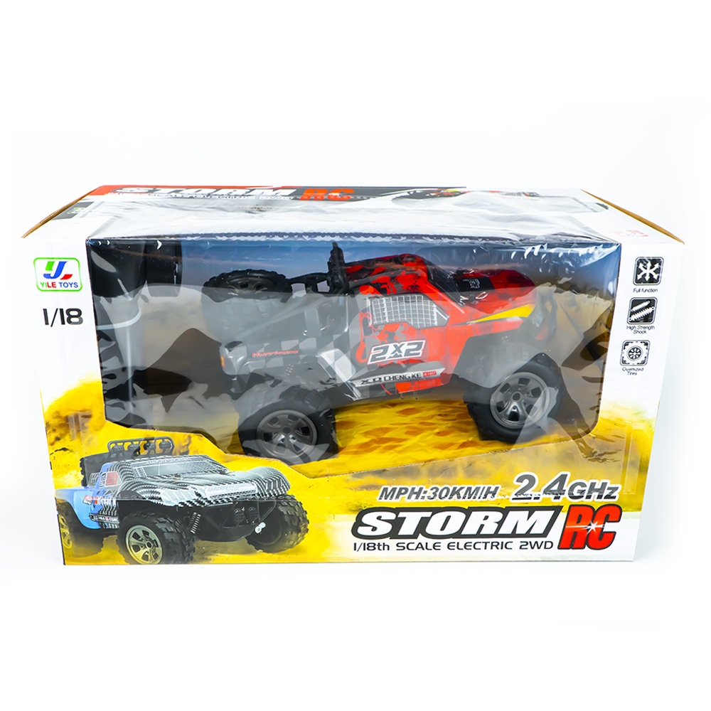 Jeep-ul cu telecomanda, cu roti din cauciuc moale si cu suspensii, scara 1:18, incurajeaza imaginatia si ajuta la dezvoltarea coordonarii ochi-mana.