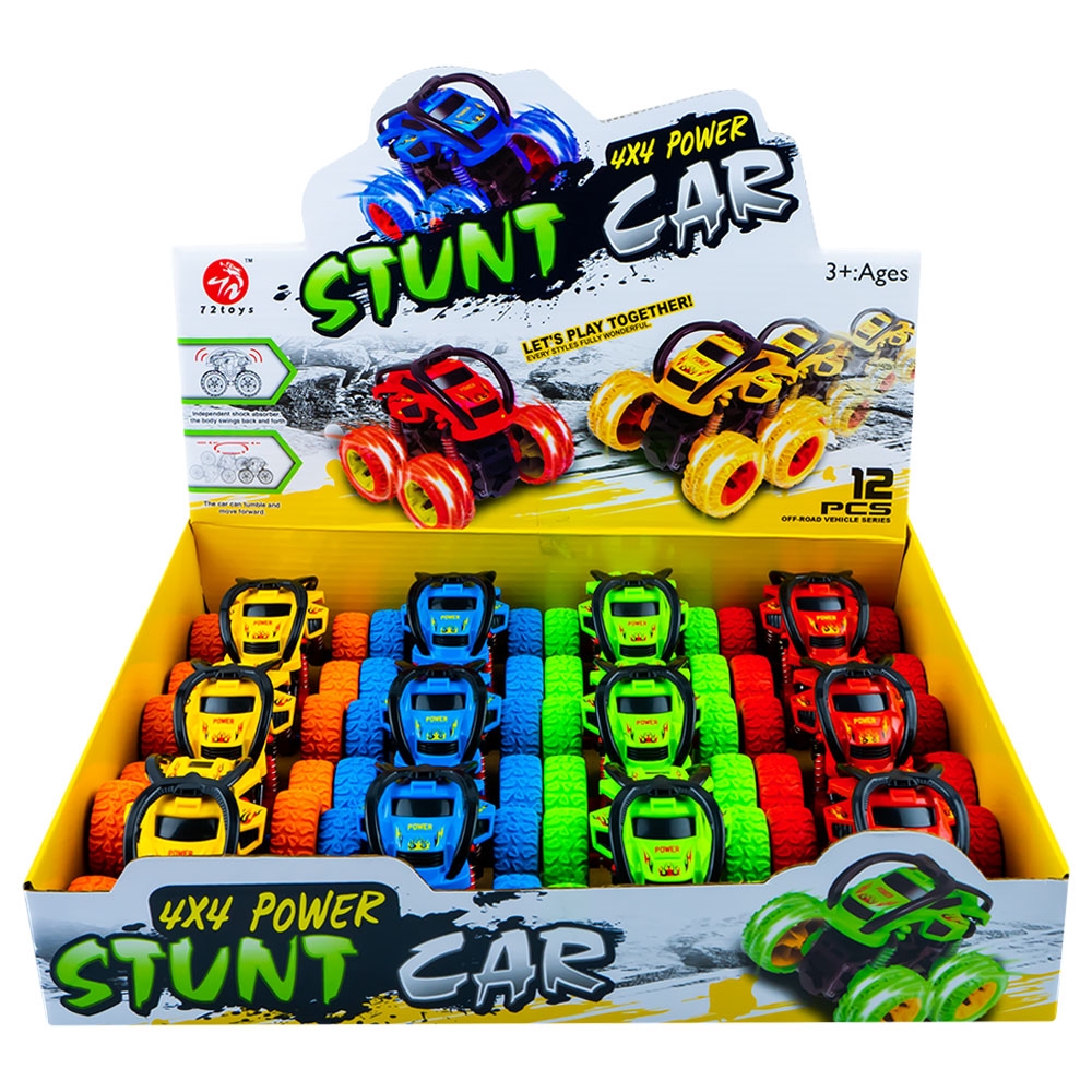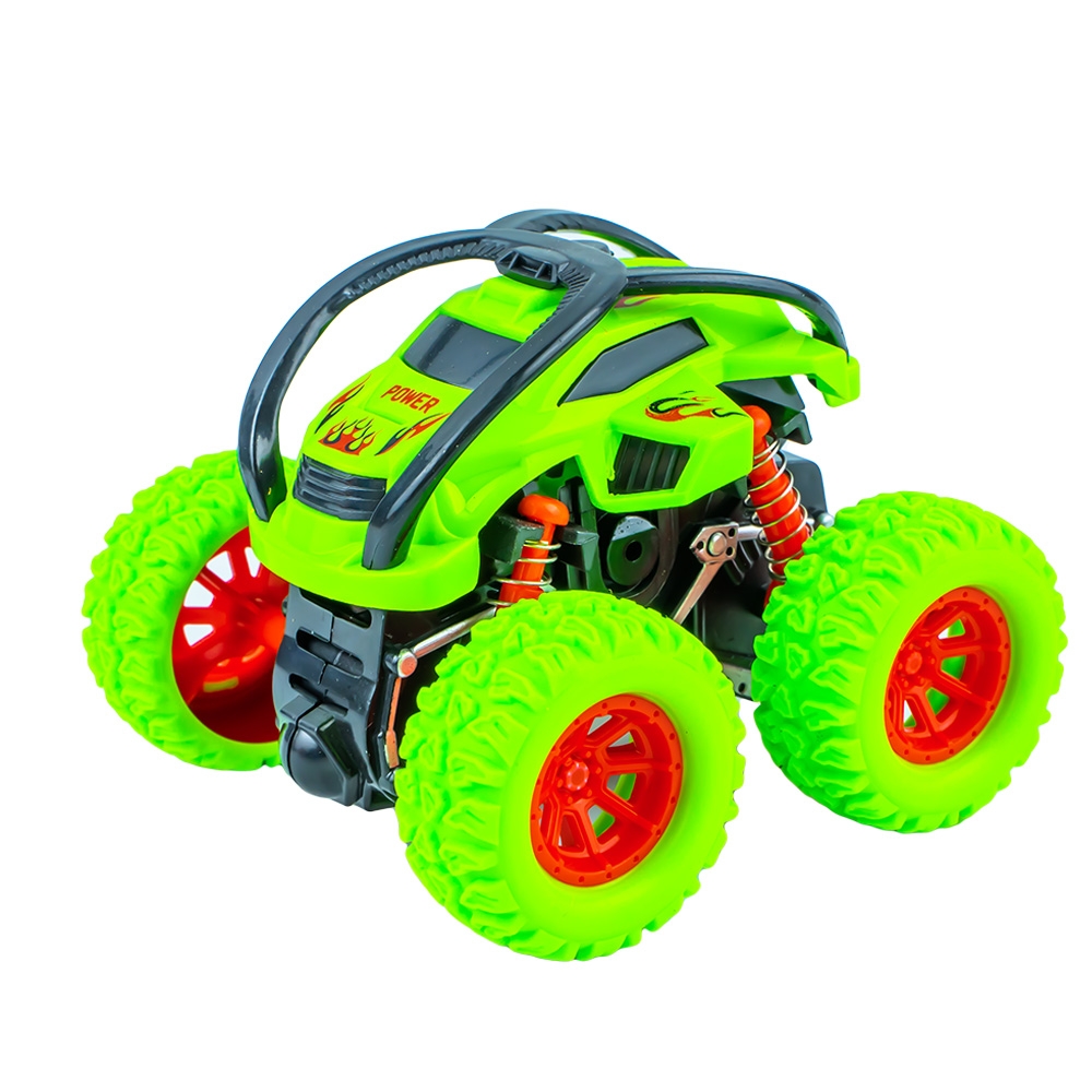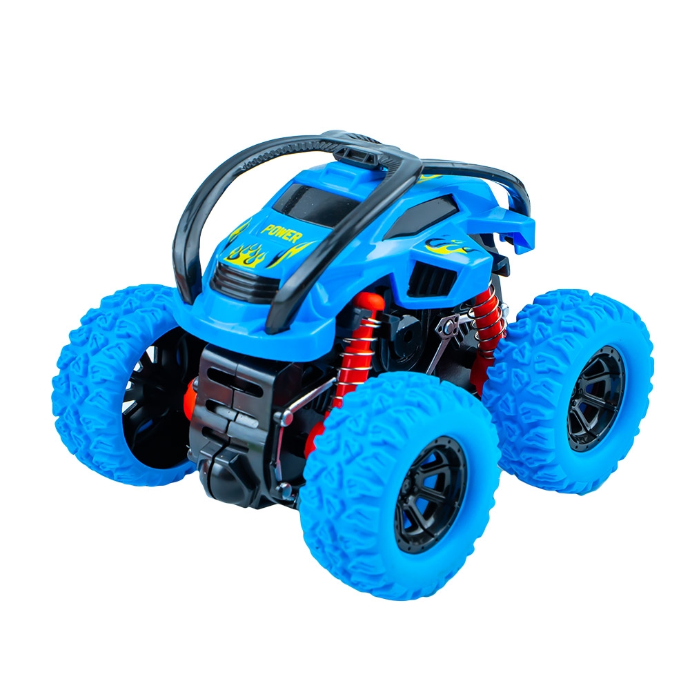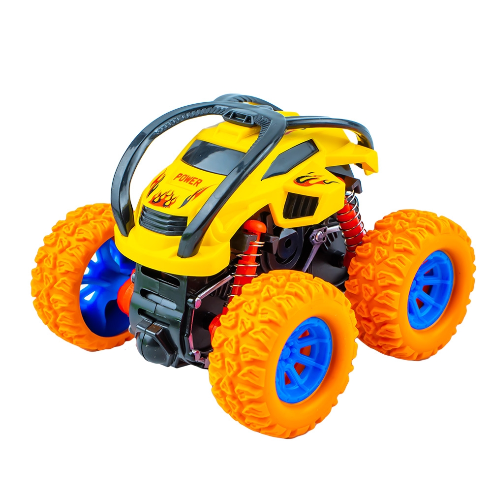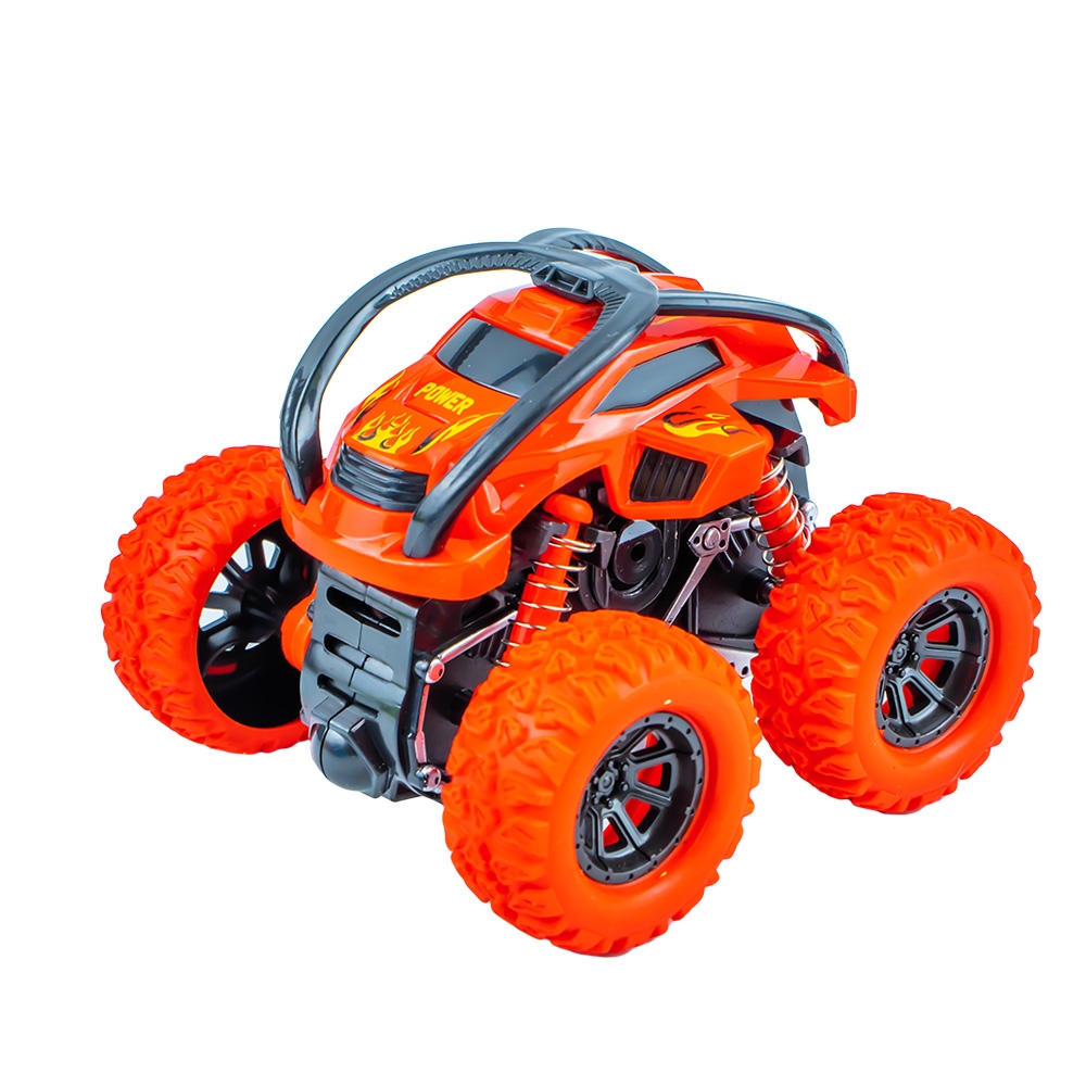 – Cand loveste un obstacol vehicului se rasuceste, facand cascadorii, rostogoliri de 360 grade.