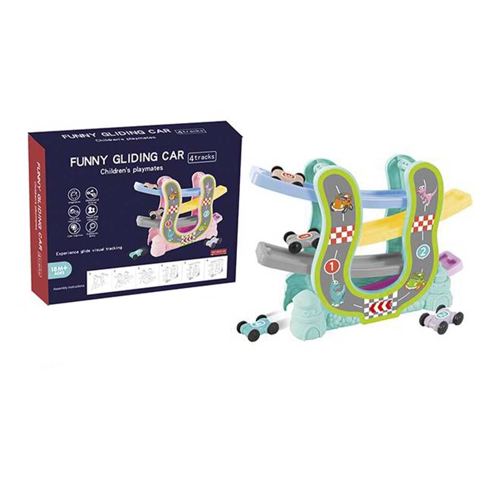 Caracteristici: Copilul aseaza masinuta in partea de sus a rampei si o impinge usor. Aceasta va urma traseul pana jos, la linia de sosire. Pista de curse are o baza stabila si este pregatita pentru ore lungi de joaca. Traseul este prevazut cu 4 rampe multicolore in zig-zag. Jucaria ajuta la dezvoltarea motricitatii, imaginatiei si creativitatii copiilor.