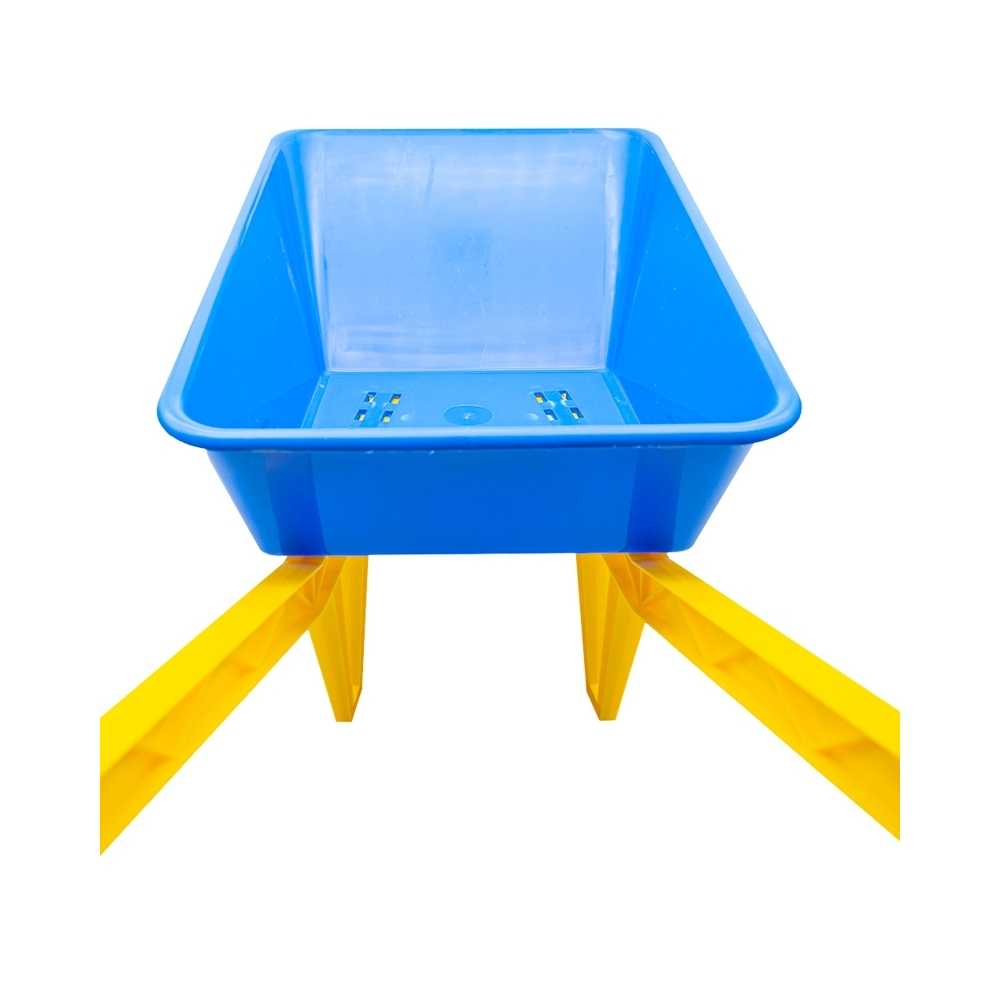 – Pachetul contine: 1 cuva, 1 roata si 2 cadre de sustinere cu maner si picior.