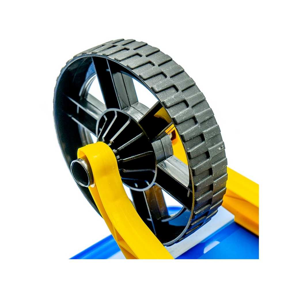 – Roaba viu colorata, cu o forma echilibrata, are roata cu striuri antiderapante pentru deplasare pe orice tip de suprafata (nisip, iarba, asfalt, etc)