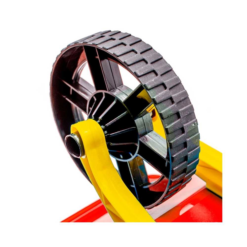 – Roaba viu colorata, cu o forma echilibrata, are roata cu striuri antiderapante pentru deplasare pe orice tip de suprafata (nisip, iarba, asfalt, etc)