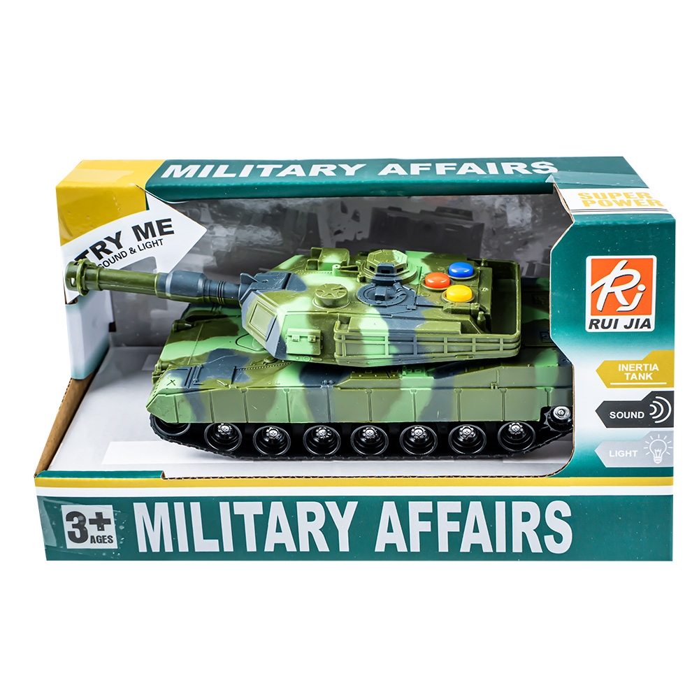 – Tancul va trezi interesul copiilor datorita diverselor optiuni de joc: turela rotativa, lumina si efecte sonore ce imita realitatea. Pe turela sunt trei butoane care declanseaza sunete de pornire, functionare, alarma, tragere cu tunul sau cu arme. In varful tevii tunului este plasat un led care se aprinde intermitent. In momentul rotirii turelei se produc pocnete.